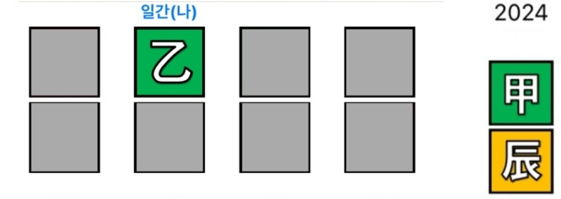예를 들어, 어떤 분의 사주 팔자 중 일간이 을(乙)목인 분은 갑진년에 어떤 기운이 관계를 이룰까요?